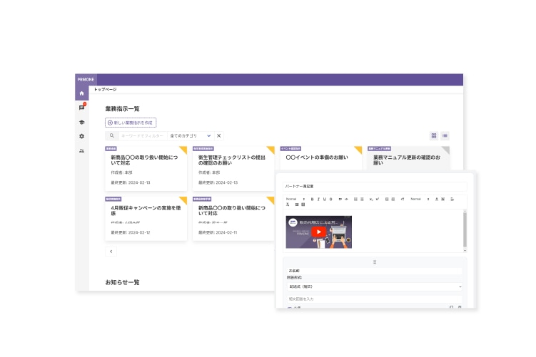 誰に何を届けるべきかが明確になり、情報の伝達漏れや遅延を防止。通知機能により、重要な施策を見逃すことなく、現場が常に最新情報にアクセスできる環境を実現します。